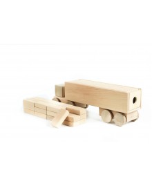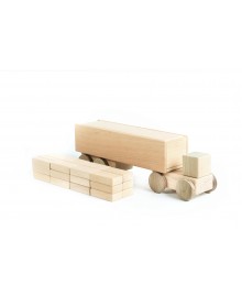 Эта игрушка – настоящий помощник в детских играх. Изготовлена из ольхи и ясеня, без лакового покрытия, полностью безопасна для малышей. Фура перевозит 24 деревянные доски, а ее тягач защищает груз от непогоды. В комплекте – гараж с выдвижными дверями, что добавляет интерактивности. Игрушка помогает изучать геометрические формы и развивает мелкую моторику.