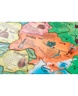 Завдяки високій точності відбитків і якості виробництва всі елементи мапи легко трансформуються у готову карту, яку цікаво складати і досліджувати, що є найцікавішим в кожній країні Європи. Запам’ятовувати, де знаходиться та чи інша країна Європи, трошки мріяти і складати план родинного відпочинку, прокладаючи маршрут майбутніх подорожей з батьками чи друзями.