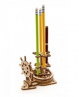 Модель «Штурвал» - это органайзер с планетарным механизмом. Стоит повернуть штурвал и шестерни сразу начинают двигаться, поворачивая к вам необходимый в данный момент карандаш или ручку. Это удобно, а следить за работой открытого механизма безумно интересно.