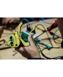 После сборки корпуса и электроники, вместе с ребенком вы сможете раскрасить работа красками, которые входят в комплект игрушки.