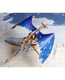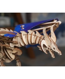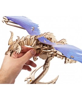 Модель Дракон Ураган имеет чрезвычайно продуманный дизайн, тело покрыто чешуей (выгравировано лазером), сделанное из прочной фанерной доски, а крылья из плотной бумаги, которые раскрашены в узор перьев.