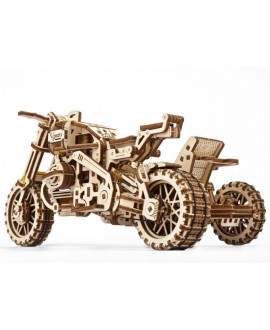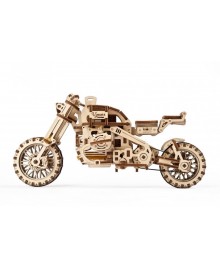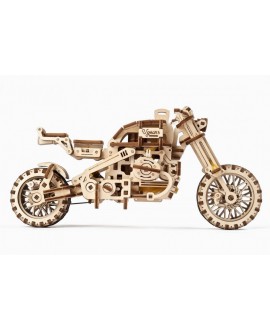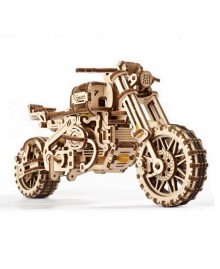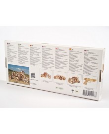 Объемный пазл изготовлен из фанерной доски, имеет естественный запах дерева. Дизайн основан на скрэмблерах от компаний Triumph Engineering и BSA пятидесятых годов.