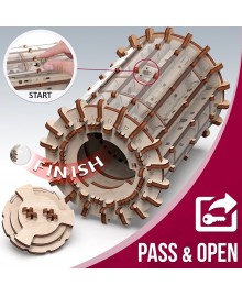 Прохождение лабиринтов почти всю жизнь захватывает людей, но вы никогда не потеряетесь в нем, а только проведете время с удовольствием. К тому же, ходы лабиринта можно менять. Конструктор собирается из 100 высококачественных, вырезанных лазером деревянных деталей, которые необходимо отсоединить от планшетов и собрать без клея по инструкции.