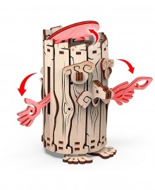 Конструктор собирается из 100 высококачественных, вырезанных лазером деревянных деталей, которые необходимо отсоединить от планшетов и собрать без клея по инструкции.