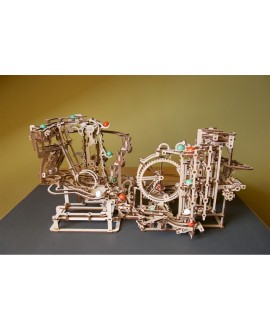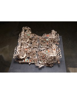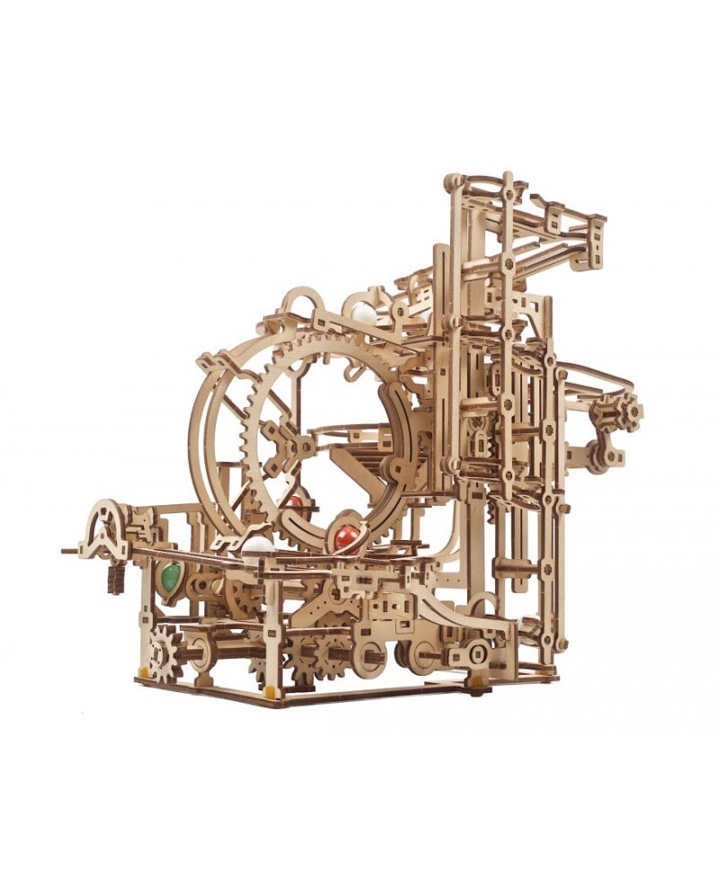 Эта новая уникальная деревянная марбл-трасса отличается оригинальным трехступенчатым механизмом подъема стеклянных шариков и набором интересных особенностей, которые привлекут ваше внимание, пока вы наблюдаете, как шарики то и дело совершают циклическое путешествие. Множество дорожек и разных элементов-препятствий упакованы в компактное пространство в этой марбл-трассе, которую вы можете собрать своими руками.