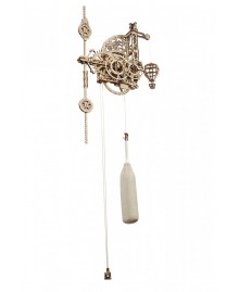 С анкерным колесом взаимодействует якорь, закрепленный на маятнике с утяжелителями вверху и внизу. Вы можете настроить ход часов до секунды, регулируя верхний и нижний утяжелители маятника. Редуктор также передает вращение на часовой и минутный диски.