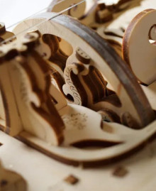 Комплект содержит все необходимые детали, которые легко вынимаются из фанерных досок. Сборка длится 4-5 часов и не требует клея или специальных инструментов.