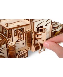 Механический 3d пазл "Тягач VM-03" изготовлен из качественной фанерной доски, которая применяется в производстве детской мебели. Модель укомплектована всем необходимым для сборки. Качество изготовления деталей очень высоко - для вырезания элементов с фанерной доски используется лазерный метод. Pазрезы произведены лазерным станком с ЧПУ. Внутри упаковки вы найдете фанерные доски, из которых нужно только выдавить готовые детали и трансформировать их в готовую работающую модель тягача. Вам не понадобятся ни клей, ни специальные инструменты. Создается модель по пошаговой иллюстрированной инструкции с объяснениями на 11 языках (украинский, английский, немецкий, французский, польский, испанский, русский, турецкий, итальянский, китайский и корейский).