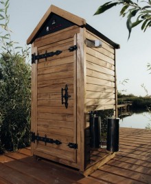 Корпус изготовлен из липовой древесины и нержавеющей стали, что обеспечивает стабильное удержание тепла и равномерное распределение дыма. Внутренний объем до 415 л позволяет коптить до 50–60 кг продуктов за один цикл, а толщина стенок 55 мм обеспечивает хорошую теплоизоляцию. Камера оснащена датчиком температуры, дымогенератором, вентилятором, перекладинами и крючками для удобного размещения продуктов.