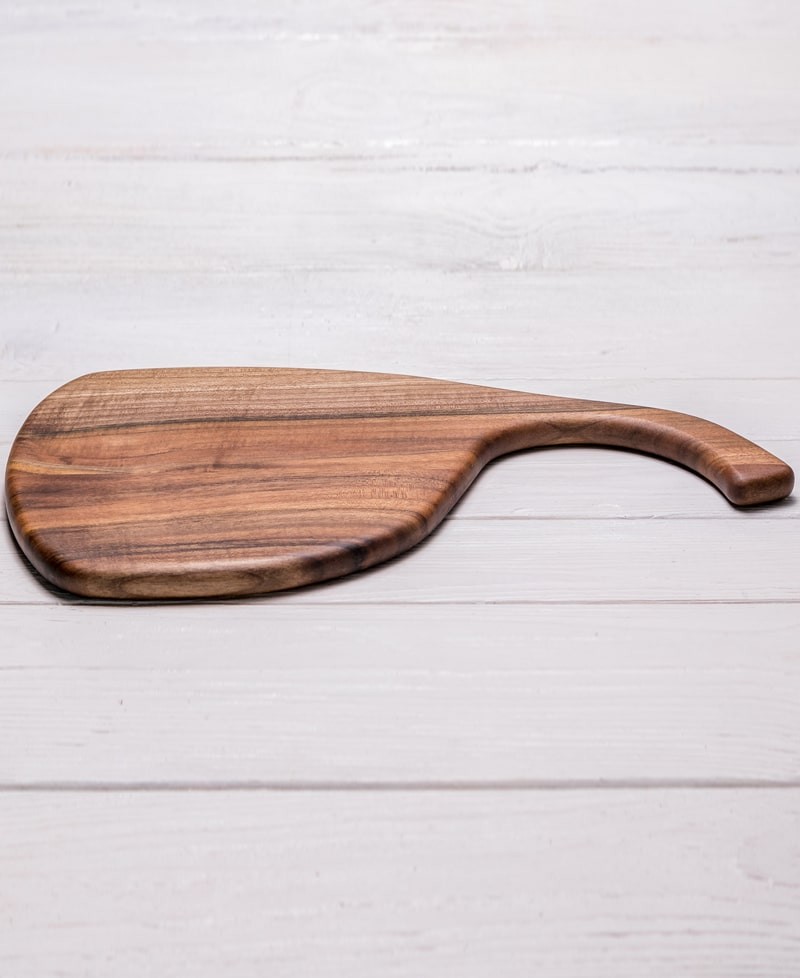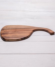 Ореховая доска нестандартной формы чрезвычайно приятная на ощупь и практична в использовании. Она станет хорошим подарком, который можно использовать с пользой.