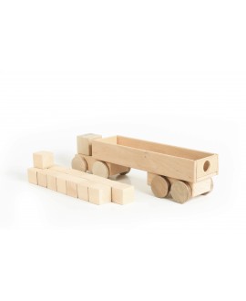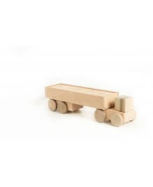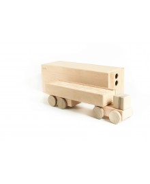 Бортовик большой - экологическая, тактильная игрушка, изготовленная из древесины первого сорта ольхи и ореха, с тягачом, полуприцепом и гаражом.