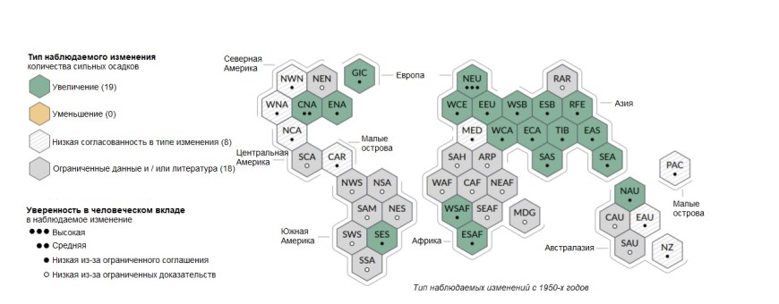 Оценка изменения количества обильных осадков в результате деятельности человека: