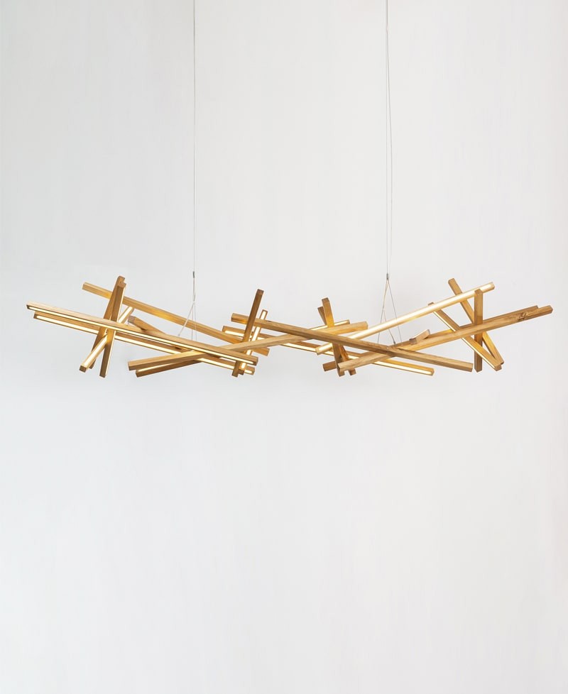 Деревянная подвесная люстра благодаря нестандартному внешнему виду создает особую атмосферу. Определенной легкостью она вдохновляет творить прекрасное.