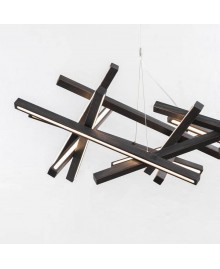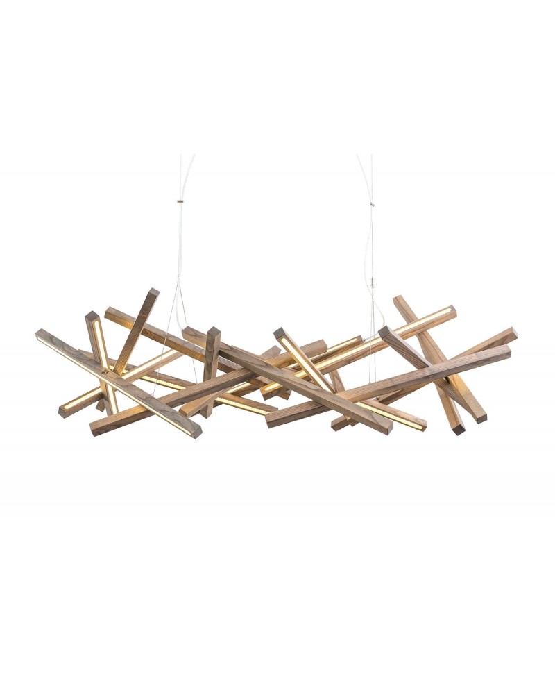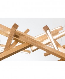 Деревянная подвесная люстра благодаря нестандартному внешнему виду создает особую атмосферу. Определенной легкостью она вдохновляет творить прекрасное.