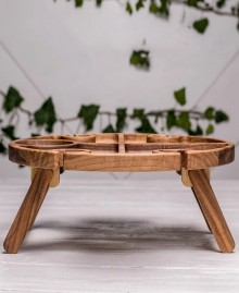 Предлагаем деревянный столик для романтических вечеров в постели. Он идеально подходит для подачи вина, бокалов и закусок, создавая уютную атмосферу. Благодаря продуманному дизайну и магнитным фиксаторам, ноги столика надежно закрепляются в любом положении.
