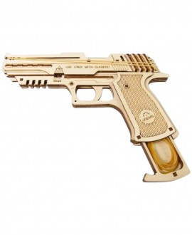 Унікальний екземпляр для вашої колекції дерев'яних 3D-конструкторів - заряджений позитивом, націлений на веселощі, механічний пістолет Вольф-01.