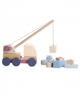 Бортовик Великий - екологічна, тактильна іграшка, виготовлена з деревини першого ґатунку вільхи та горіха, з тягачем, напівпричепом і гаражем.