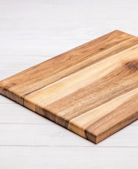 Якісна дошка прямокутної форми для нарізки інгредієнтів при приготуванні їжі або подачі готових продуктів.