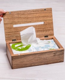 Дерев'яна серветниця — стильне рішення для вашого столу вдома, в кафе чи ресторані. Вона приховає різнокольорові пакунки серветок, додаючи елегантності та урочистості. Завдяки вбудованим магнітам, серветниця зручна у використанні, а її преміальний вигляд вражає якістю.