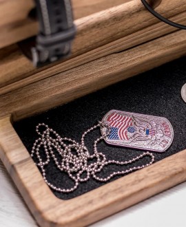 Оригінальність цього органайзера полягає в тому, що тут знайдеться місце для годинників та браслетів, які можна стильно розмістити в правому верхньому куті виробу. У свою чергу, трохи нижче можуть бути розміщені ваші візитівки.