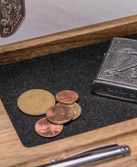 Зручний органайзер з деревини натурального волоського горіха для ваших повсякденних речей буде мати гарний вигляд як на робочому столі, так і в домашній обстановці. Це може бути смартфон, планшет, портмоне, окуляри, ключі, годинник, флешки або ручки - тепер ви завжди будете впевнені, що знаєте, де знаходяться всі ваші аксесуари.
