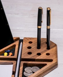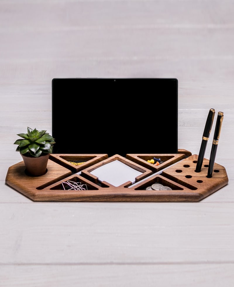 Що може бути більш гармонійним, ніж поєднання деревини і зелені кімнатних рослин? Якщо у Вас немає відповіді, ми рекомендуємо Вам спробувати покористуватися даним органайзером "Суккулент". Ця підставка на робочий стіл просто створена для тих, кому до душі відчуття близькості з природою.