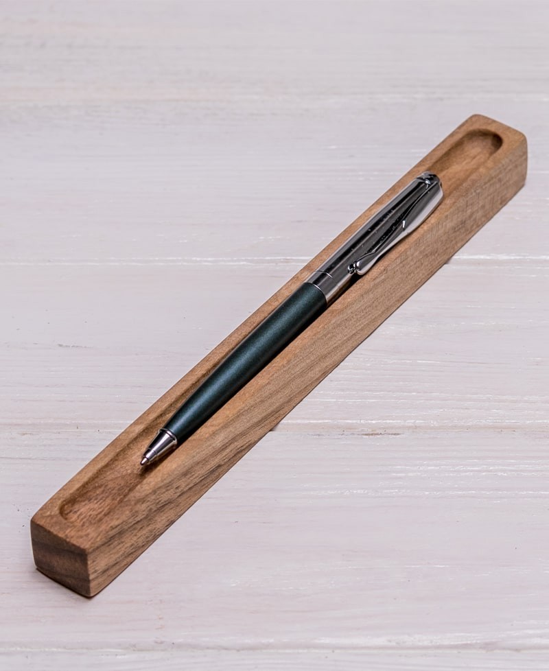 Більш органічно і оригінально цю функцію виконує іменний аксесуар для ручки. Солідний зовнішній вигляд додасть Вашому робочому простору особливий шик. Натуральний матеріал - деревина волоського горіха - прикрасить Ваш стіл і завершить облаштування робочого столу. Ми переконалися - дорогий Parker або практичний Waterman дуже добре виглядає на цьому органайзері, а якщо додати персоналізацію подарунка -буде просто ідеально!