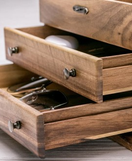 Ця шкатулка з дзеркалом з деревини волоського горіха допоможе вам зберегти всі ваші прикраси в порядку. Вона відзначається якісним виготовленням, функціональністю та універсальним стилем.