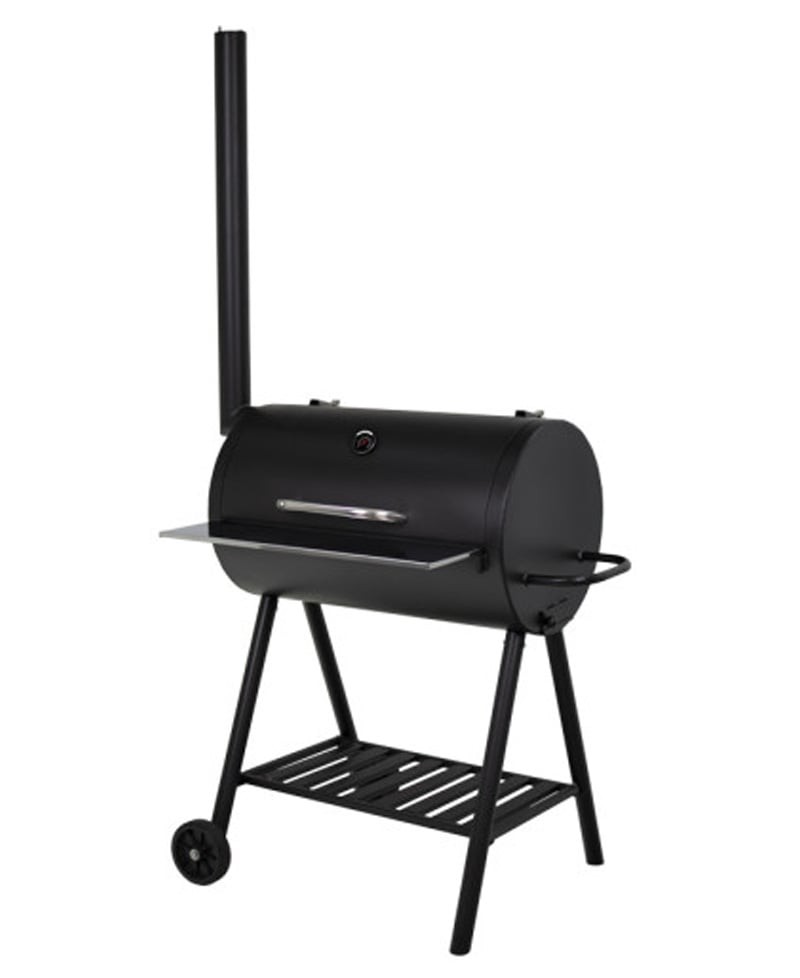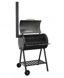 Цей гриль виготовлений з листового металу методом вальцювання, що забезпечує йому міцність. Внутрішня частина гриля не фарбується, щоб уникнути потрапляння фарби на продукти під час приготування. Три решітки, розташовані на двох рівнях, дозволяють одночасно готувати м'ясо та овочі. Для зручного очищення від сажі та вугілля передбачений спеціальний отвір. Гриль легко переміщати завдяки ручці та колесам, що робить його мобільним і практичним для використання на будь-якій ділянці.