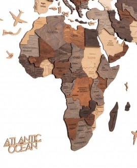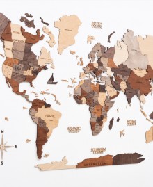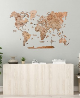 Ця багатошарова мапа світу – елегантне настінне панно, яке поєднує натуральну текстуру березової фанери та глибокий тривимірний ефект. Завдяки трьом рівням шарів та чітким гравіруванням континентів та назв ця мапа створює виразний об’єм на стіні та прекрасно доповнює інтер’єр – у вітальні, офісі, студії або коворкінгу.