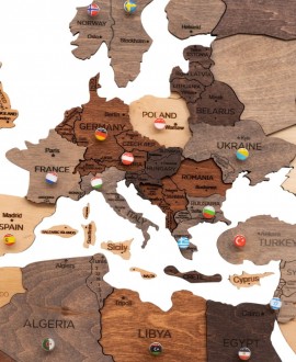 Виготовлена з матеріалів, тонованих масловосковою фарбою, мапа зберігає природну текстуру дерева та виглядає натурально й стильно. Вона стане чудовим подарунком для мандрівників, сімей, друзів або як індивідуальний декор для житлового приміщення або робочого простору.
