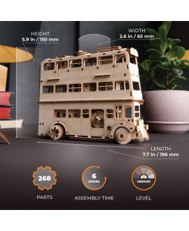 Ця дерев’яна механічна модель автобуса є захопливим доповненням до колекції присвяченої Гаррі Поттеру, і є справді дуже розумним інженерним витвором. Розробляючи цей триповерховий витвір мистецтва з його унікальними функціями, дизайнери та інженери поставили перед собою амбітну мету: створити автобус, який може звужуватися та розширюватися, а також змінювати швидкість.