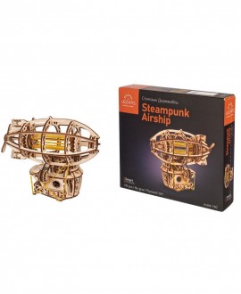 Спіймайте дух пригод і льотних фантазій, будуючи власний Стімпанк Дирижабль! Ця фантастична дерев'яна модель повітряного судна проймається стімпанк-стилем, що додає їй унікальний характер. Стімпанк Дирижабль має все необхідне для захоплюючої подорожі: люльку з заднім ґанком, гумо двигун, рухливий штурвал, гвинти з приводом від двигуна та перемикач "Пуск/Стоп".