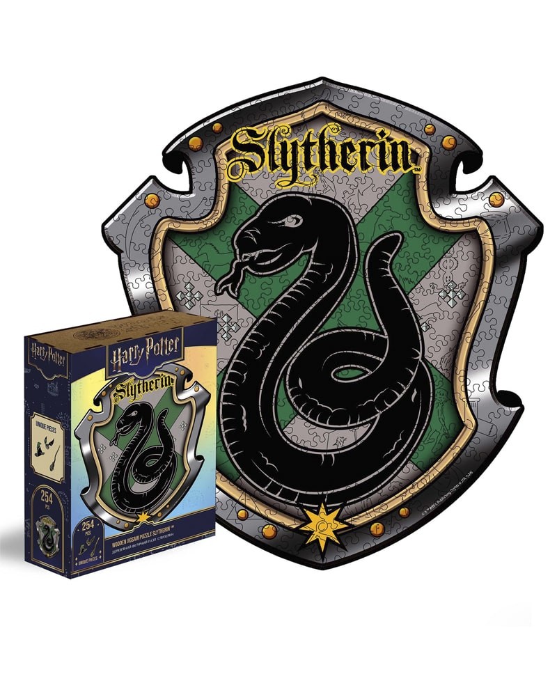 Цей вишуканий пазл вшановує один із найзагадковіших факультетів Гоґвортсу. Символічна змія – знак гнучкості, інтелекту та непохитної рішучості, а зображення герба нагадує про вплив магів, таких як Северус Снейп і Волдеморт.