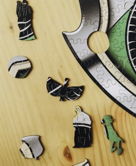 Унікальні фігурні елементи розповідають власну історію – серед деталей заховано магічні артефакти, символи та постаті з чарівного світу. Пазл виготовлено з натуральної деревини, кожен фрагмент ретельно вирізано лазером, що гарантує приємну текстуру та точність з'єднання.