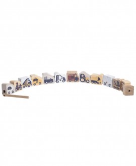 Машинки 2 (шнурівка) – яскрава дерев’яна іграшка, що перетворює нанизування на цікаву історію про транспорт! Малюк збирає власну автоколону, протягаючи шнурок крізь подвійні отвори у фігурках – тренує пальчики, увагу та координацію, водночас вивчаючи кольори й види машин.