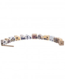 – 13 різнокольорових дерев’яних машинок (легкові, спецтехніка, міський транспорт тощо).