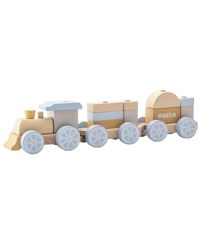 Цей барвистий поїзд складається з 16 різнокольорових деталей і рухливих вагонів, які допоможуть дитині розвивати фантазію та створювати власні композиції. Гра з поїздом перетворюється на захоплюючу пригоду, де можна поєднувати деталі різної форми та розміру, створюючи нові образи.