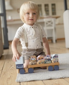 Тягач з машинками – дерев’яний набір, який захоплює з першого погляду!