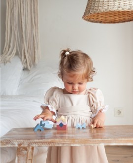 У виробництві використано добірну карпатську деревину – бук та явір, що вирізняється міцністю і приємною текстурою. Кожен елемент покрито безпечною пастельною фарбою на водній основі – вона не має запаху, не містить токсичних речовин і є абсолютно безпечною для дитини.