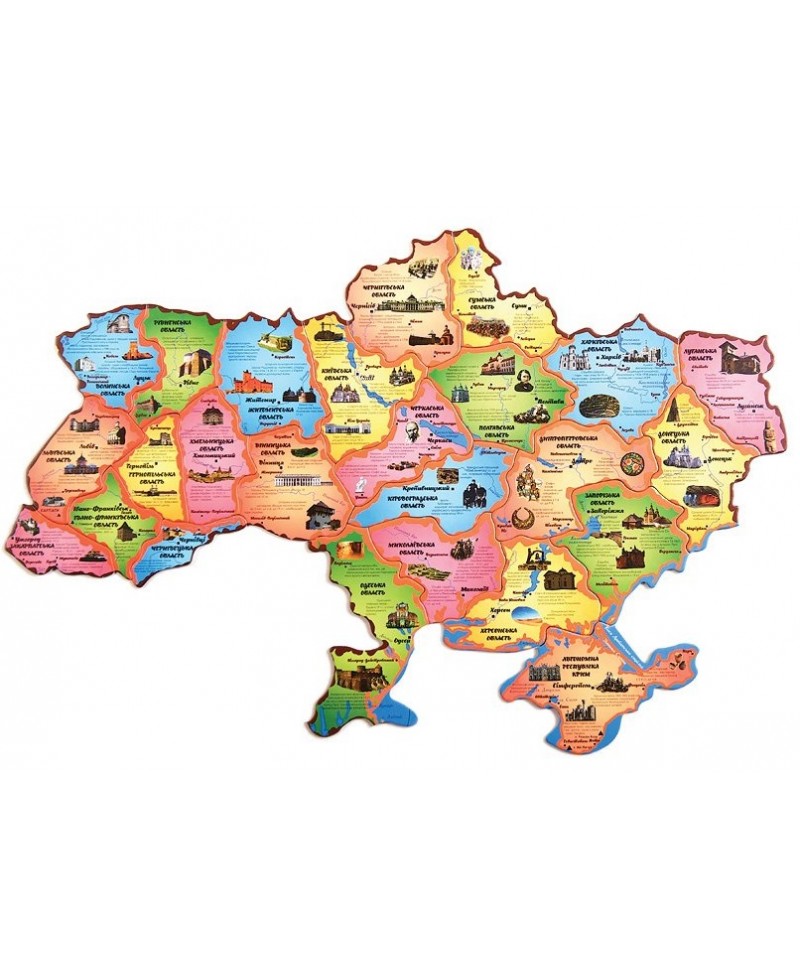 Історична карта-пазл демонструє найцікавіші сторінки з історії держави Україна – давні кургани і поселення перших племен, фортеці, православні собори, місця видатних битв, пам’ятки архітектури і садово-паркового мистецтва, а також видатних особистостей, пов’язаних із певним регіоном (областю). За допомогою мапи ви зможете простежити історію українських земель від 3 тис. до Р.Х. і до наших днів і вивчити.