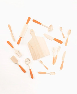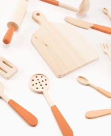 Дерев’яний набір кухонних приборів – це елегантне втілення дорослого побуту в дитячому розмірі. Набір створений для того, щоб перетворити звичайну гру на вишуканий ритуал приготування їжі. Завдяки лаконічному дизайну та натуральній фактурі, ці прибори стають ідеальним доповненням до дитячої кухні, навчаючи малюка культурі харчування та гостинності через естетику природних матеріалів.
