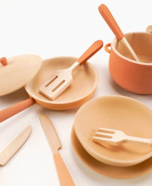 Процес сервірування стає ще цікавішим завдяки наявності двох видів тарілок: глибоких (10,5 х 10,5 х 3 см) для «перших страв» та пласких (11,5 х 11,5 х 1,5 см) для вишуканих гарнірів. Весь набір важить лише 0,4 кг, що робить його легким та безпечним навіть для наймолодших кухарів від 3 років.
