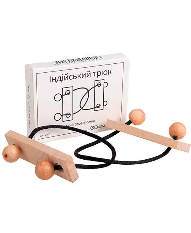 Кишенькова головоломка з дерева. Завдання: Роз'єднати дощечки не розв'язуючи вірьовки. Зауважте, що всі говорять '' це не можливо '', а потім сміються, тому що ''це просто''.