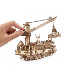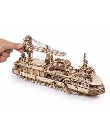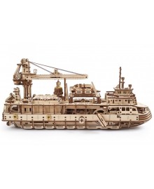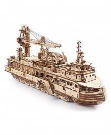 Скелетна конструкція Науково-дослідного корабля дає змогу спостерігати за всіма внутрішніми механізмами. Матеріал виготовлення - високоякісна фанерна дошка, при збиранні конструктору вам не знадобиться клей або інші інструмент.