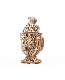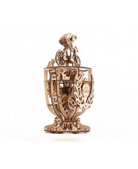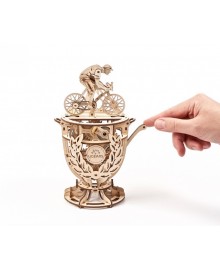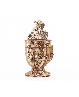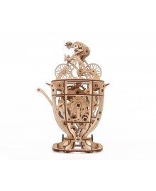 Модель "Велосипедист" це 3Д пазл, зроблений з фанерної дошки, середньої складності збірки. Конструкція складається з велосипедиста, який мчить на зустріч перемозі і кубка, що вміщує механізм. Саме невеликий моторчик змушує елементи рухатися без зовнішньої енергії, немов перед нами жива людина, що бере участь у велоперегонах Тур де Франс.