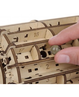 Проходження лабіринтів майже все життя захоплює людей, але ви ніколи не загубитесь у ньому, а тільки проведете час із задоволенням. До того ж, ходи лабіринту ви можете змінювати. Конструктор збирається з 100 високоякісних, вирізаних лазером дерев'яних деталей, які необхідно від'єднати від планшетів і зібрати без клею за інструкцією.