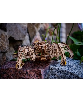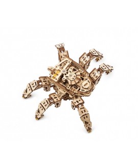 Дерев'яний механічний конструктор Гексапод Дослідник складається з 388 деталей. Рівень складності – середній. Час складання — близько 8 годин. Він оснащений міцною металевою пружиною, яка забезпечує рух робота, і подушечками для ніг із гумками для кращого зчеплення з гладкими поверхнями.