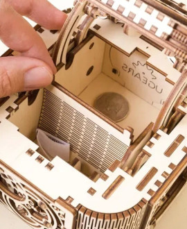 Модель повністю укомплектована всім необхідним для складання. Модель виготовлена з якісної фанерної дошки, перевіреної європейськими лабораторіями і застосовується також у виробництві дитячих меблів. Всередині упаковки ви знайдете фанерні дошки, з яких потрібно лише видавити готові деталі і трансформувати їх у готову модель. Якість виготовлення деталей дуже висока – для вирізання елементів з фанерної дошки використовується лазерний метод. Для складання дерев'яного 3D пазла "Скринька з секретом" вам не знадобляться ані клей, ані спеціальні інструменти. Складається модель за покроковою ілюстрованою інструкцією з поясненнями на 10 мовах. Способи з’єднання деталей, що використовуються в механізмах, є винаходами і захищені міжнародними патентами.