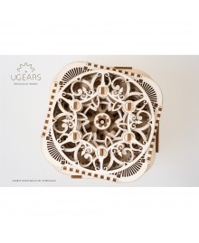 "Скринька з секретом" відкривається спеціальним ключем, який вбудований в механізм кришки. Ажурне різьблення дозволяє спостерігати за обертанням шестерень і рухом деталей в бокових частинах скриньки. Всередині ви знайдете два відділення для ювелірних виробів, записок та інших дрібниць.